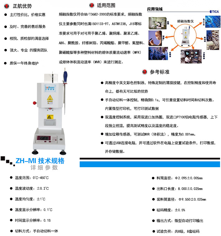 產(chǎn)品特點(diǎn):1、高精度中英文彩色控制器,特殊定制的薄膜按鍵,在控制精度和使用壽命上,都有無可比擬的優(yōu)勢(shì) 2、手自動(dòng)切料一體控制,精確到0.1s,可任意設(shè)置切料時(shí)間和切料次數(shù)。 3、內(nèi)置微型打印機(jī),可打印測(cè)試數(shù)據(jù) 4、雙溫度控制系統(tǒng),采用雙進(jìn)口加熱圈,雙進(jìn)口PT100鉑電阻傳感器,上下段獨(dú)立控溫,提高測(cè)試精度以及溫度的穩(wěn)定度。 | |